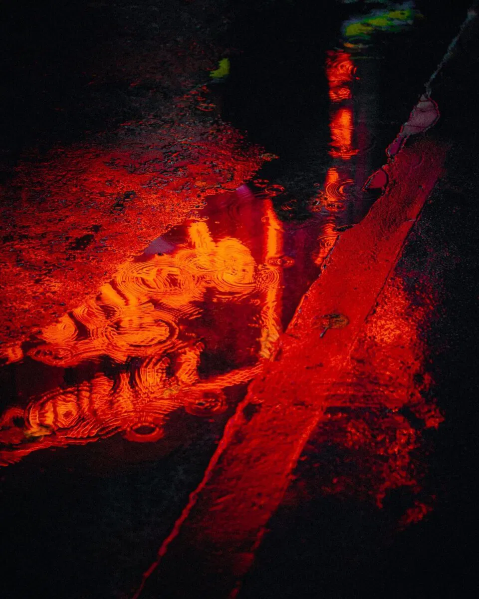 Sarigul lässt sich von Meistern wie Ara Guler inspirieren. Ernst Haas, Saul Leiterund Harry Gruyaert – doch sein Stil bleibt unverwechselbar. Wie seine Vorbilder (mit Ausnahme von Guler, der für seine monochromen Arbeiten bekannt ist) nutzt er Farbe nicht nur zur Darstellung, sondern auch zur Erzeugung von Assoziationen; Licht und Schatten werden zu emotionalen Werkzeugen, und Spiegelungen – durch Glas, Pfützen oder Regen – dienen als Portale zwischen Realitäten. „Ich versuche, zu verschmelzen.“ street photography „mit einem Hauch von bildender Kunst“, erklärt er. „Ich möchte nicht einfach nur dokumentieren, was ich sehe – ich möchte es auf eine visuell interessante Weise präsentieren.“